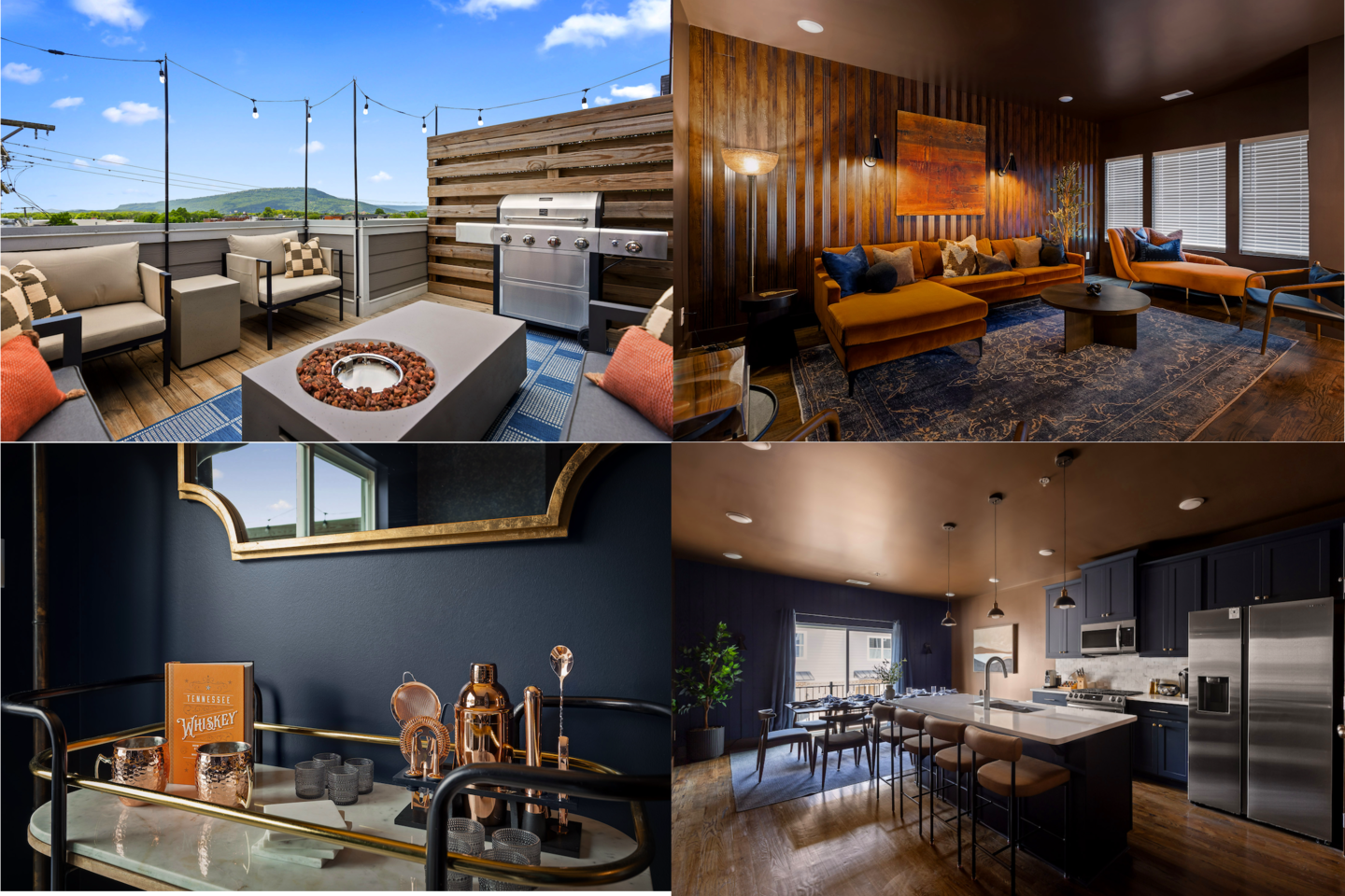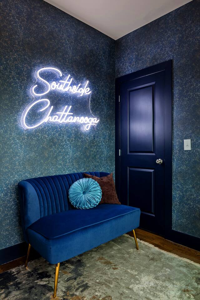 The Southside Speakeasy offers you the opportunity to gather in the Scenic City and is a great jumping off point to explore. - Four story Townhome - Downtown location - Convenient location to attractions - Washer/Dryer - TVs in living room and all bedrooms - Large dining table and counter seating - Coffee bar - 2 outdoor spaces - Propane Grill - Fire Pit - 1 Car Garage + street parking Distance to attractions: Chattanooga Choo Choo: 1 mi (20 min walk) The Signal: 1 mi (20 min walk) Univ of Tennessee at Chattanooga: 1 mi (5 min drive) Zoo: 1.7 mi ( 5 min drive) Chattanooga Market: 2 mi ( 6 min drive) AT&T Field: 2.4 mi (10 min drive) Walnut Street Bridge: 2.5 mi ( 10 min drive) *Closed until September 2026* Aquarium: 2.9 mi (10 min drive) Ruby Falls: 4.7 mi (15 min drive) Rock City: 6.8 mi (20 min drive) Getting Around: Bike Chattanooga Main St. Station: 2 mi (8 min walk) Free Downtown Shuttle @ the Choo Choo: 1 mi Uber Optional Upgrades: Please note that optional upgrades will incur an additional charge to your stay but they are only available if we can accommodate your request. Once we confirm your upgrade, we will notify you. After your booking, a payment request will be sent through this platform. Early Check-In: Check-in at 1 PM: $65 Check-in at 2 PM: $45 Check-in at 3 PM: $30 Late Check-Out: Check-out at 12 PM: $30 Check-out at 1 PM: $45 If you have any questions or would like to request an upgrade, feel free to message us. Layout of our space is below. Please be aware, this is a townhome with 4-stories of stairs. The main living area is on the 2nd level and there are bathrooms located on the ground and 3rd floors. The living room couch can be used as a sleeping place. Please notify us if you plan to use this as a bed so we can provide the appropriate sheets and pillows. 1st Level (ground floor): -Garage -Queen bed + private bathroom w/ walk-in shower -W/D 2nd Level: -Dining + Living areas -Small Balcony - No bathroom on this level 3rd Level: -Primary Bedroom w/ King bed + private bathroom with walk in shower -Bunk Room w/ Full-over Queen bunks and twin pull-out mattress -Full Bath with bathtub/Shower combo 4th Level: -King bed -Indoor lounge space -Rooftop Lounge -No bathroom on this level There is ample room in the living room or primary bedroom for an air mattress ( you will need to bring your own and the bedding)